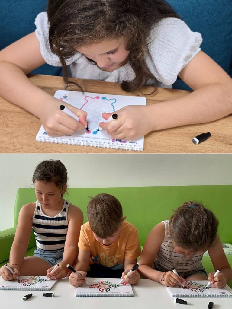Zaradi vaj z obema rokama se možganska plastičnost in razvoj možganov zgodita skoraj neopazno – z dvema flomastroma v rokah, z nasmehom in dobro voljo.